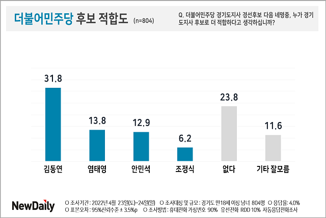 경기도지사 여론조사 결과 알아보기(4월 25일)