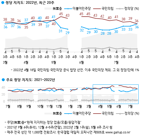 여론조사 지지율(대통령, 정당) 정리하기(7월 29일 발표)