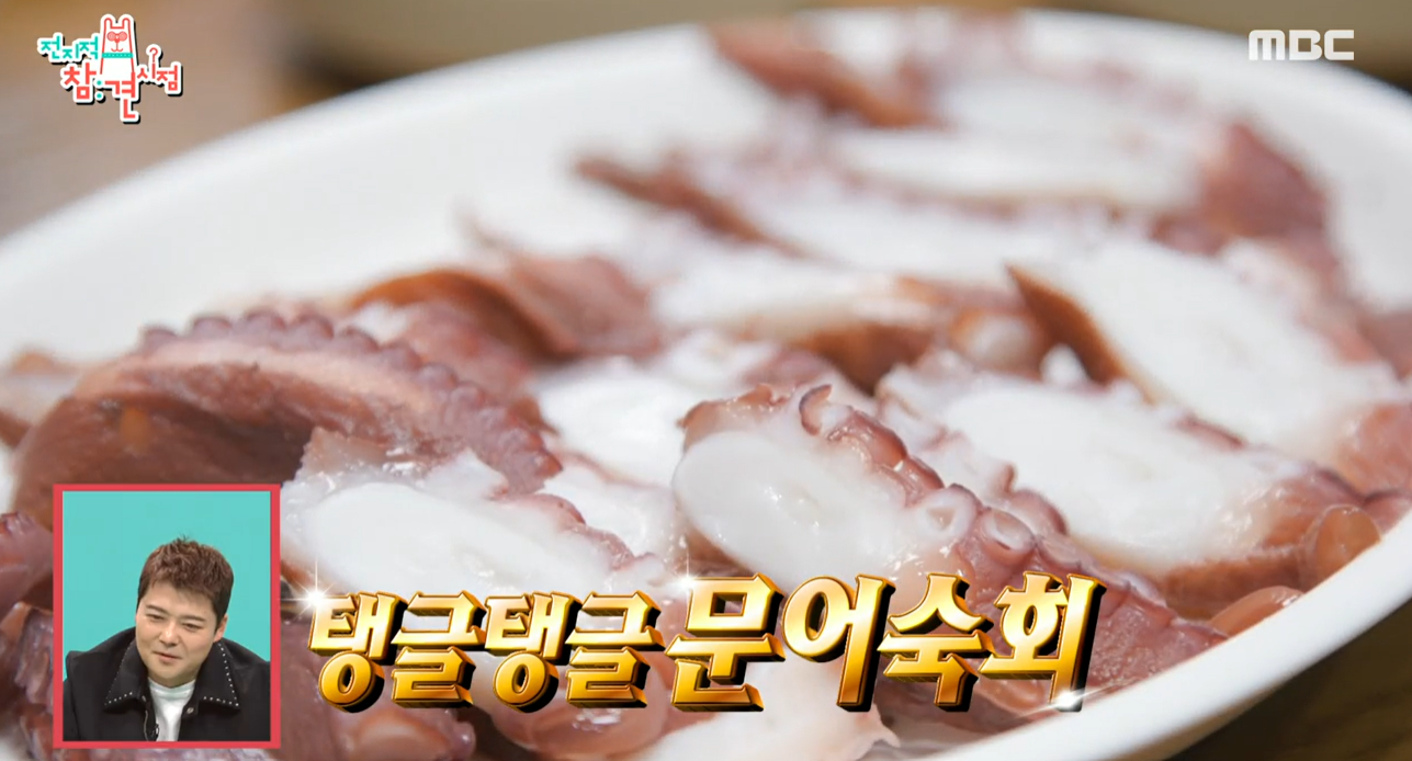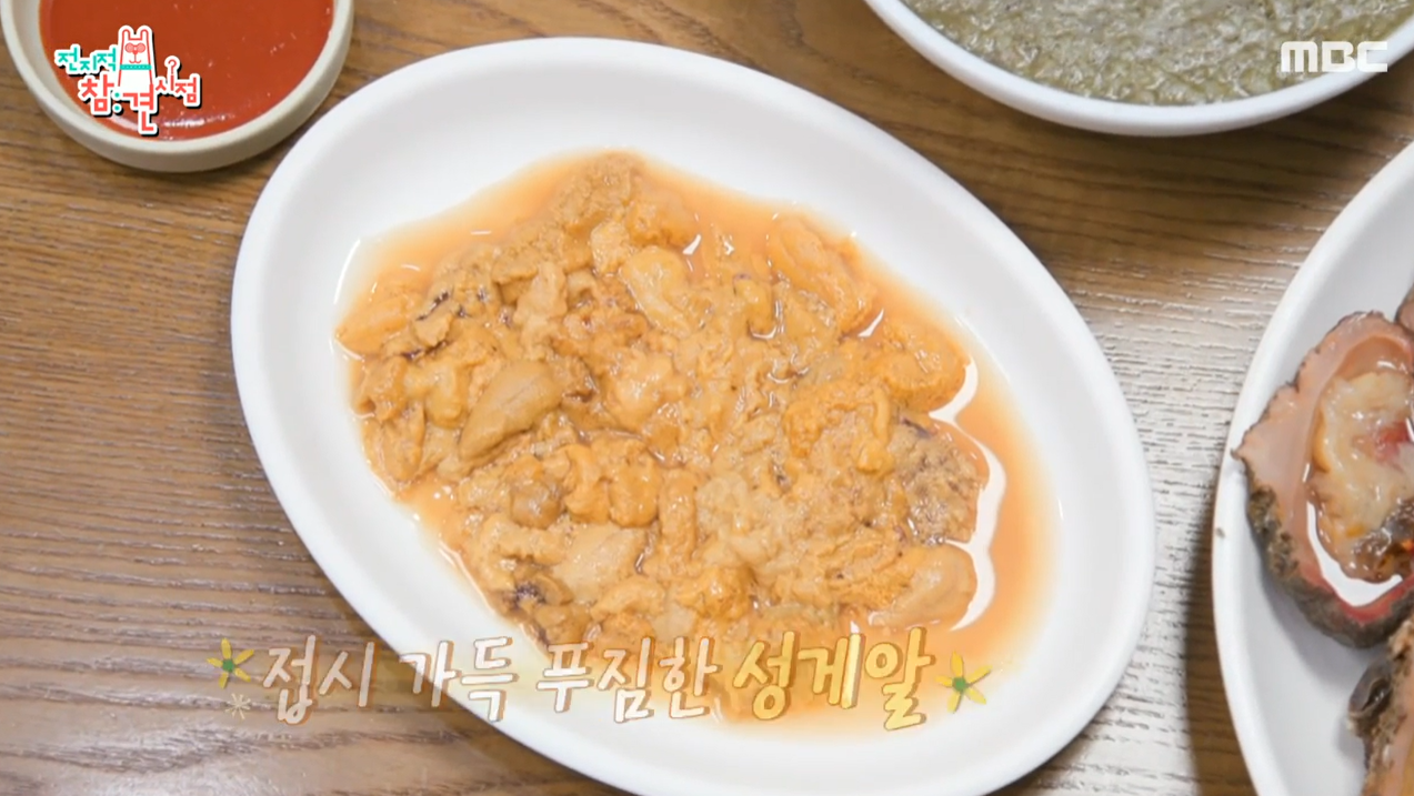 기본으로 나오는 꽃멍게와 성게알 그리고 탱글탱글 문어숙회에 바다 내음 가득한 밑반찬들까지 전지적 참견시점의 방송시간을 고려할 때 정말 고역이 아닐 수가 없습니다. 특히 문어랑 꽃멍게는 먹는 법이 따로 있는데 초장보다는 김치를 올리고 문어, 모자반, 미역에 고추냉이를 올려 먹으면 참 맛있을 것 같습니다.
