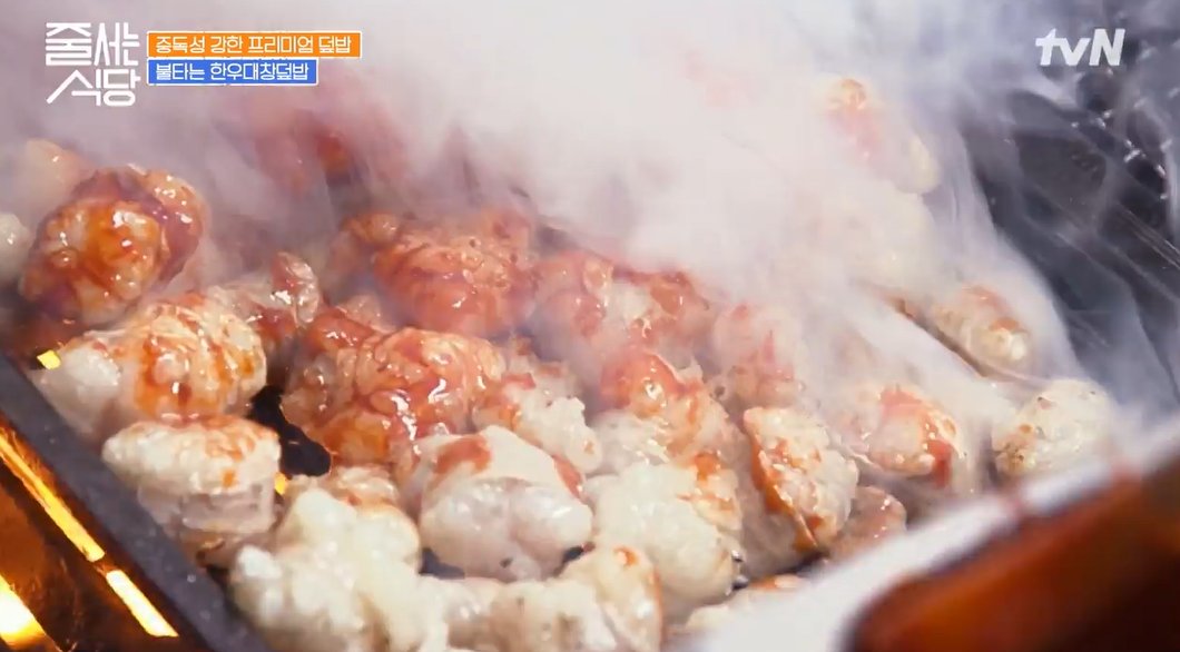 한우 대창이라는 부위 자체는 다소 생소할 수 있지만 특제소스로 맛을 낸 대창에 그릴 위에 불맛을 더하면 묘한 중독성을 일으킨다고 합니다. 대창 역시 겉은 바삭, 속은 촉촉 겉바속촉의 맛을 느껴보고 싶습니다.
