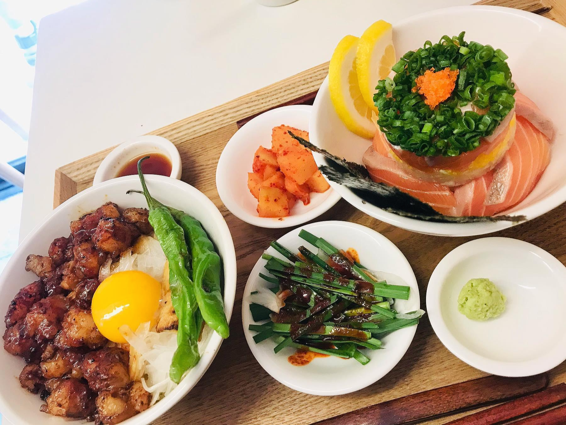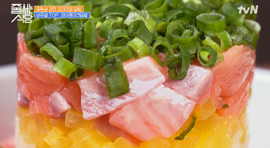 생연어 좋아하셔서 흔히 사케동으로 불리는 연어덮밥도 참 좋아하시는 분이 많습니다. 이 곳 역시 연어덮밥을 양파, 단무지, 연어로 탑을 만들어 맛과 비쥬얼을 사로 잡았습니다.