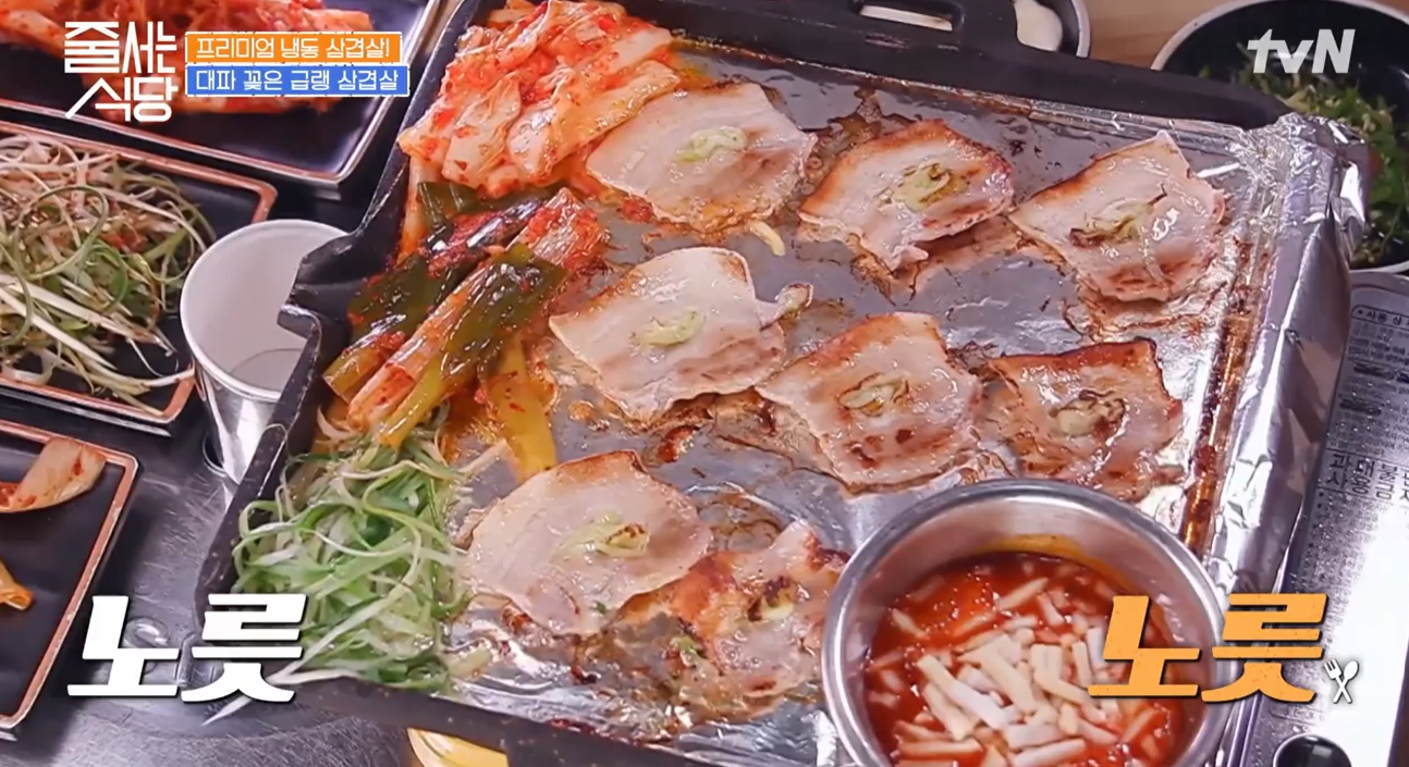 삼겹살을 그냥 먹어도 맛있는데 파를 구우면 달아진다는 사실을 알고 있는 우리는 이게 얼마나 반칙인지 쉽게 알 수 있습니다. 고기는 고기대로 구워서 맛있는 파는 파대로 입안에서 맛있게 어울려진다는 것을