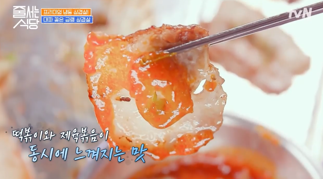 프라이팬위에서 같이 익는 특제 고추장 소스는 다소 느끼해 질 수 있는 삼겹살의 느끼함을 잡아 줌과 동시에 떡볶이와 제육볶음이 동시에 느껴지는 맛을 선사한다고 합니다.