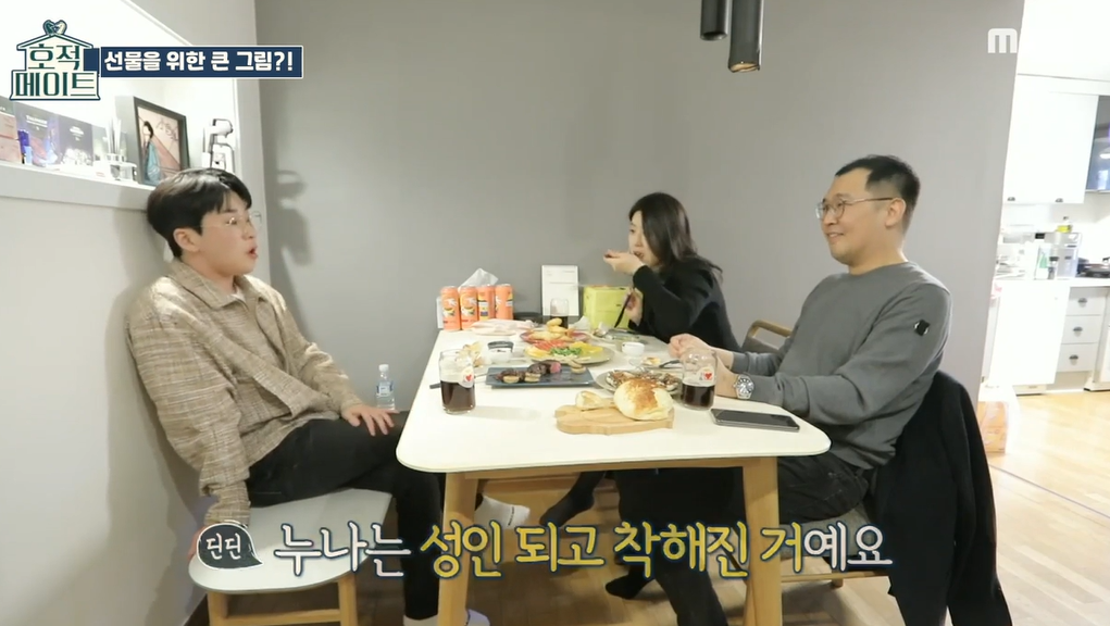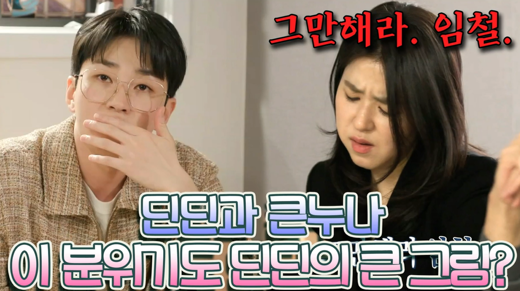 그래서 사실 누나의 임용 축하파티를 하려고 하는데 그냥 주면 왠지 재미가 없으니까 일부러 매형앞에서 누나를 골탕먹이기도 하는 등의 행동을 합니다. 하지만 이 분위기는 딘딘의 큰 그림!!